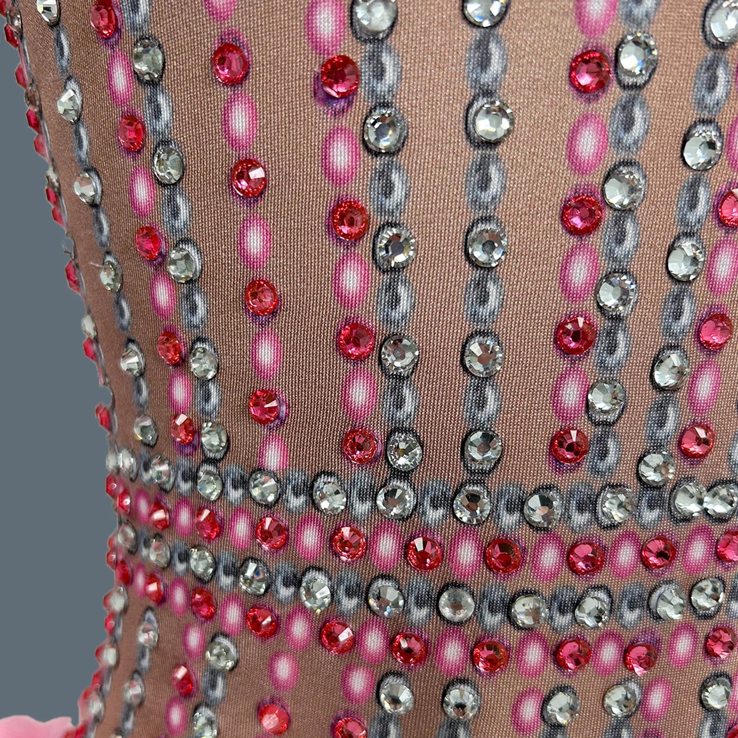 Flower Rhinestones Long Sleeve Pink Jumpsuit